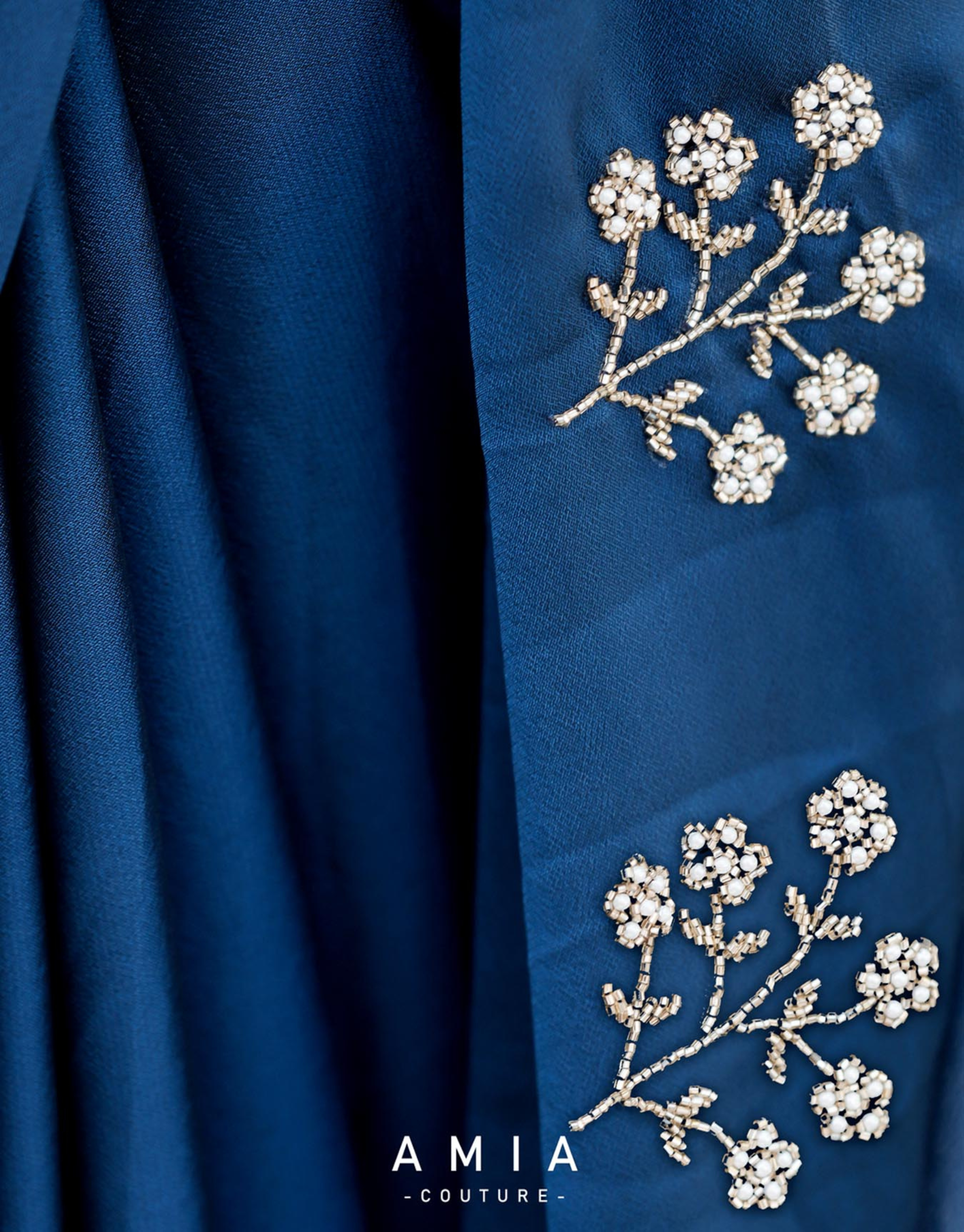 Exude timeless elegance with this Navy Blue Embroidered Saree from AMIA Couture. Crafted in premium Georgette or Soft Organza (as per selection), and soft, flowing fabric, this saree is adorned with delicate floral embroidery that adds subtle charm and sophistication. The deep navy hue creates a refined and graceful look, while the lightweight texture ensures effortless draping and comfort. Perfect for evening gatherings, festive occasions, and formal events, this saree beautifully blends minimal design with luxurious detailing for a polished ethnic statement.
